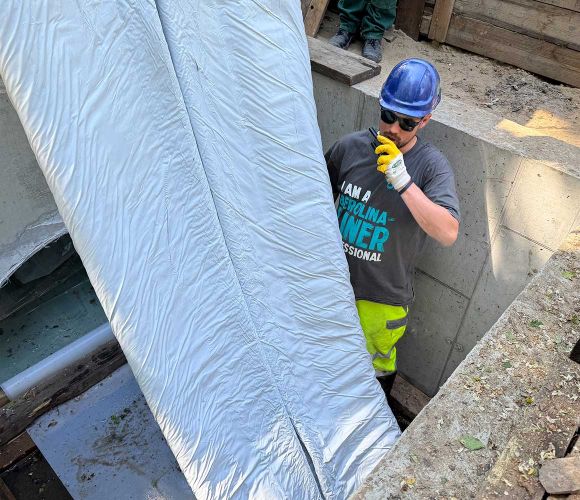 Einbau eines Berolina-Liners am Bauvorhaben Burgstraße.