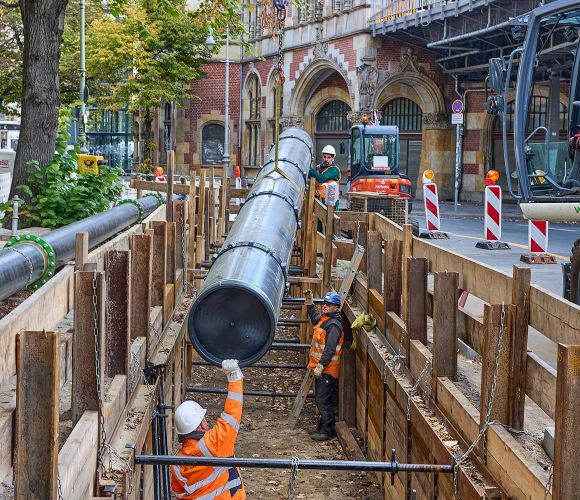 Rohrsanierung in geschlossener Bauweise – damit hat sich STEHMEYER + BISCHOFF BERLIN deutschlandweit einen Namen gemacht. Der große Vorteil hierbei ist, dass die Rohre aufgrabungsfrei eingebaut werden können. Das heißt: Bebaute Oberflächen, Straßen und Wohngebiete werden gar nicht oder nur geringfügig durch Tiefbauarbeiten beeinträchtigt. Es gibt keine Erdbewegungen und somit weder Transportkosten für Aushub und Verfüllmaterial noch CO2-Emissionen. Der Verkehr kann während der kurzen Bauzeit ungehindert weiterfließen.